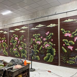 Mẫu Mành tre trúc , mành tranh vẽ tay sơn dầu 14